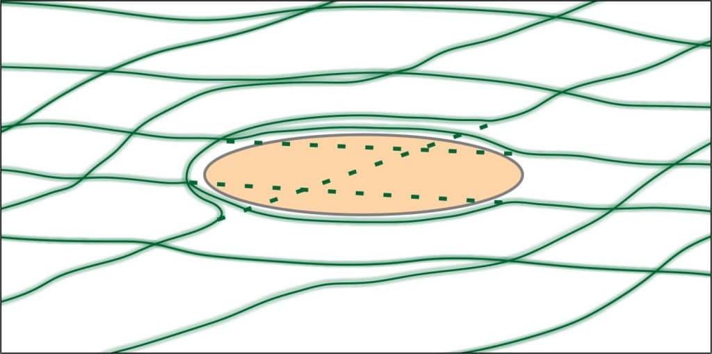 Maasäteilylinjat sisältävät useita eri osatekijöitä, joista vain osa on ihmisille haitallisia. Viereisen kuvan tapauksessa hartmannlinjat tuntuvat kietävän positiivisen energiapaikan. Tarkemmin mitattaessa havaitaan kuitenkin, että osa hartmannlinjan sisältämistä osatekijöistä (katkoviivat kuvassa) kuitenkin kulkee energiapaikan läpi. Erkaantuneet osatekijät yhtyvät taas toisiinsa energiapaikan ulkopuolella.