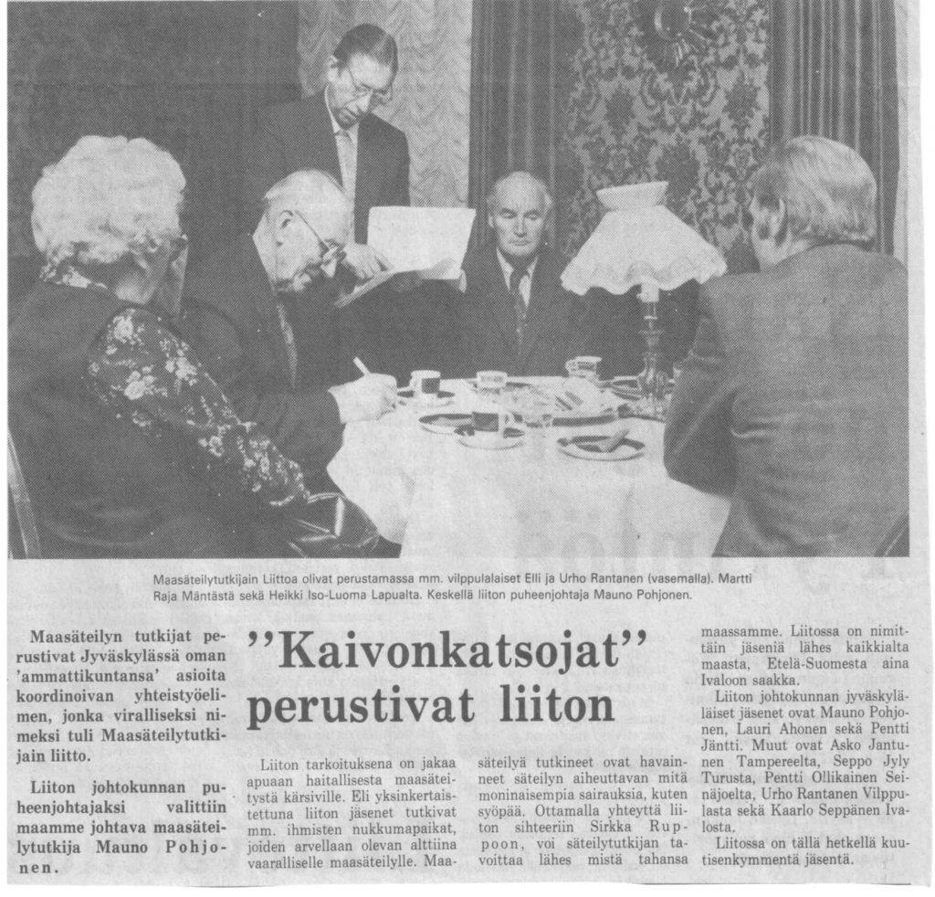 Yhdistyksen perustavasta kokouksesta 17.4.1980 on säilynyt Keski-Suomalainen -lehdestä peräisin oleva lehtileike. Mauno Pohjonen takana keskellä.