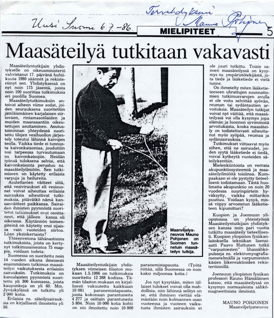 Maasäteilyntutkijat ry:n perustajiin kuuluneen Mauno Pohjosen jälkeen yhdistyksen toimintaan ja kehitykseen vaikuttivat merkittävällä panoksellaan 1990-luvun loppupuolelle saakka Esko Jalkanen maasäteilyn tutkijana ja kouluttajana sekä pitkäaikainen sihteeri Sirkka Ruppa.